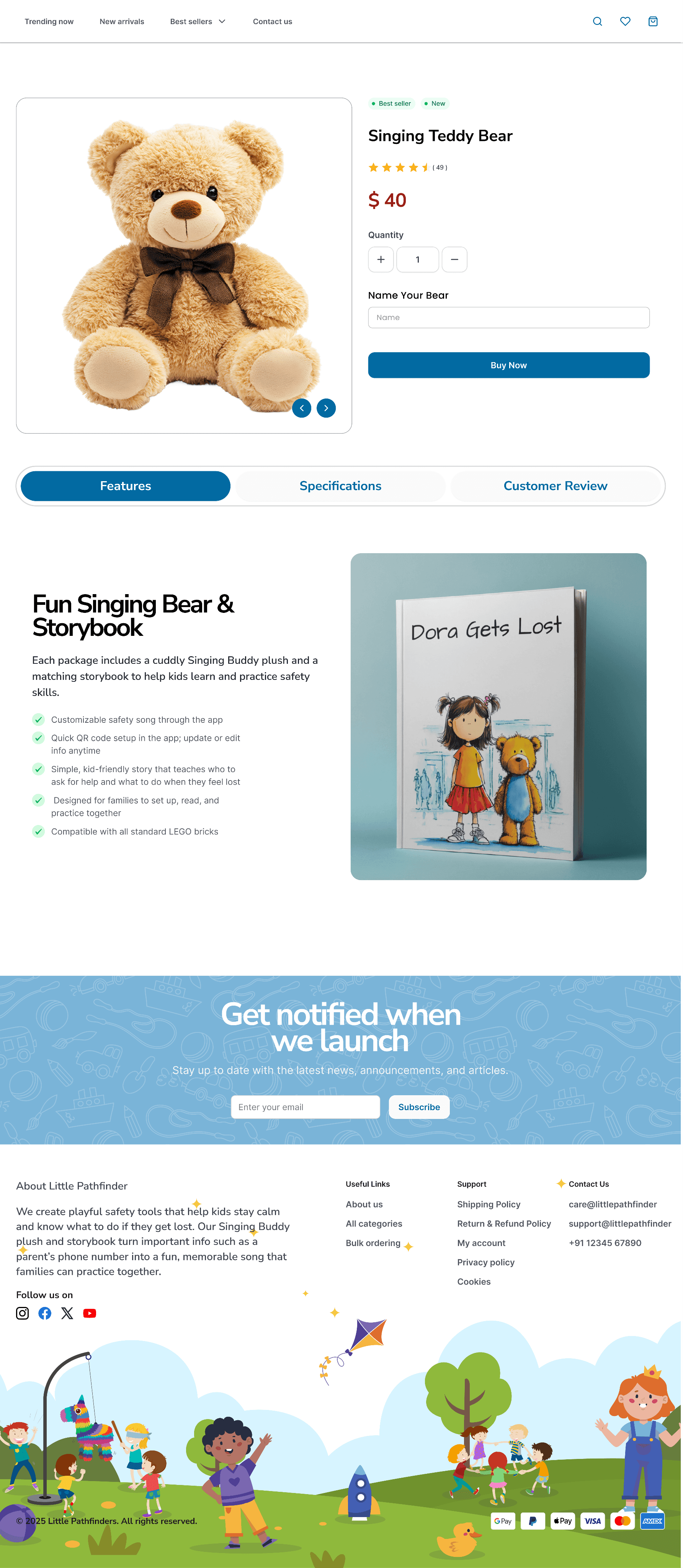 Little Pathfinder is a research-informed concept designed to support young children when they feel lost in public spaces. Through playful, hands-on interactions (storytelling, visuals, and guided practice), it helps children remember key personal information, learn “stay put” and help-seeking strategies, and recognize safe adults (e.g., employees, security). The experience prioritizes emotional comfort and privacy-by-design, encouraging parent–child collaboration.